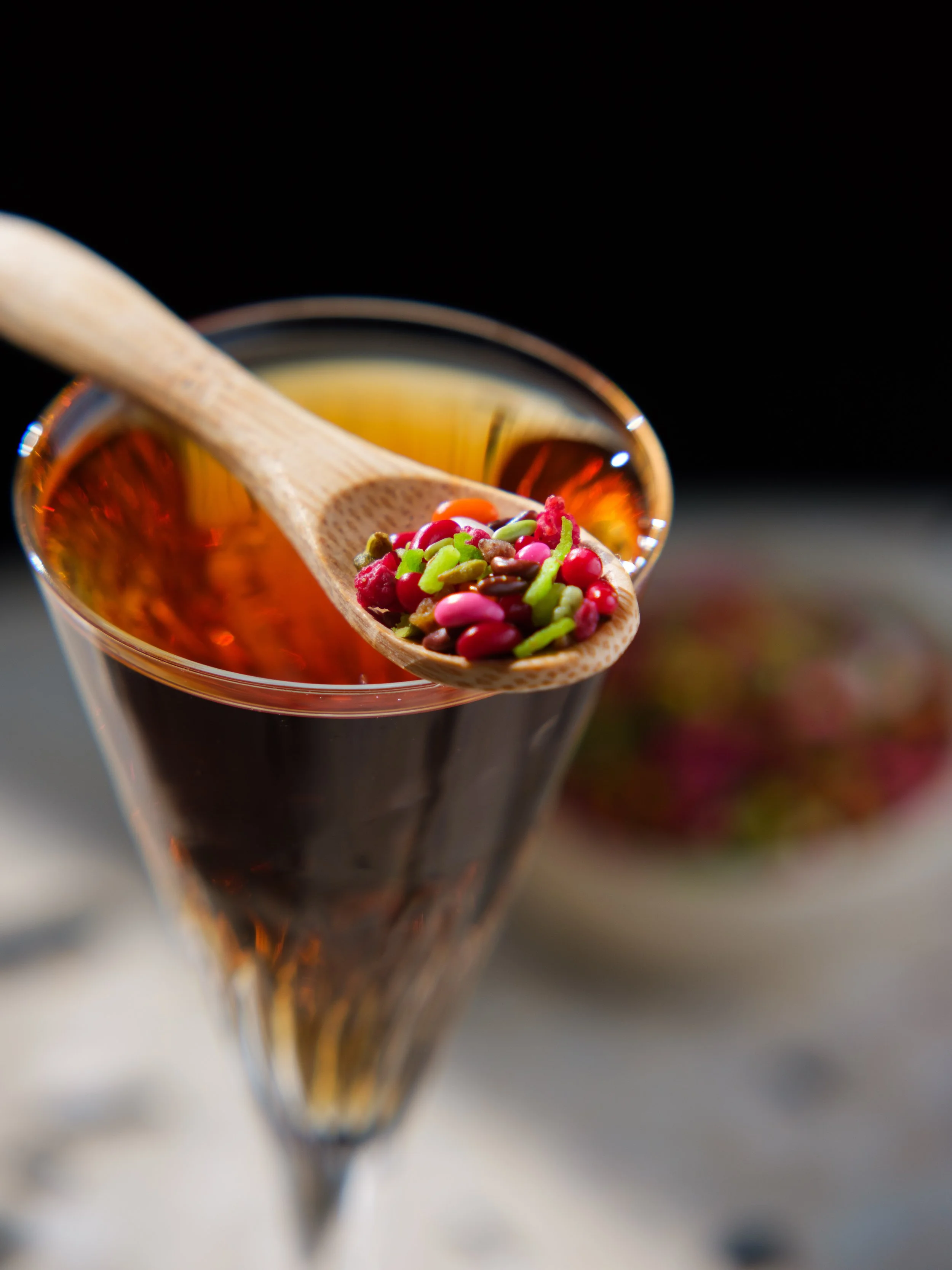 NEGRONI PARADISO : BOBBY’S PINANG RACI GIN - WILLEM’S WERMOED - CAMPARI PARADISO - BANDOENG 22 PANDAN LIQUEUR - TIKI BITTERS